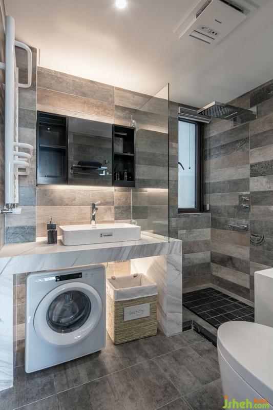 主衛(wèi)的瓷磚為了配套整體空間的色調(diào),在市場(chǎng)采購(gòu)很久,通過(guò)格局的劃分,滿足了盥洗,馬桶,淋浴,浴缸,小件衣物洗滌機(jī),收納籃等功能。