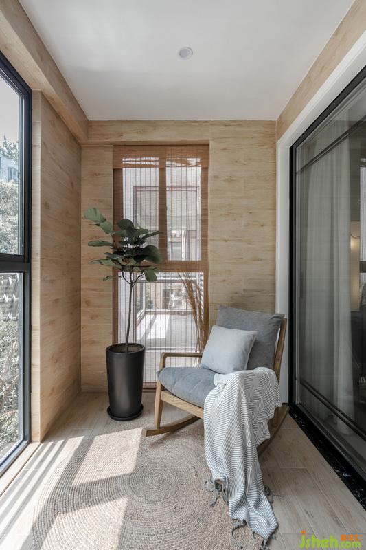 手工卷簾搭配手工植物水蘆葦草編地毯,營(yíng)造出一種出于自然,而高于自然的休閑陽(yáng)臺(tái)既視感,閱讀,休憩,發(fā)呆也好,想心思也罷,只怕是只能用古人的結(jié)廬在人境,而無車馬喧的意境來表達(dá)了吧。