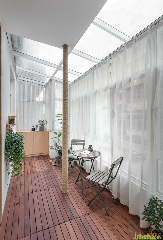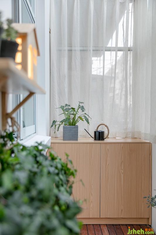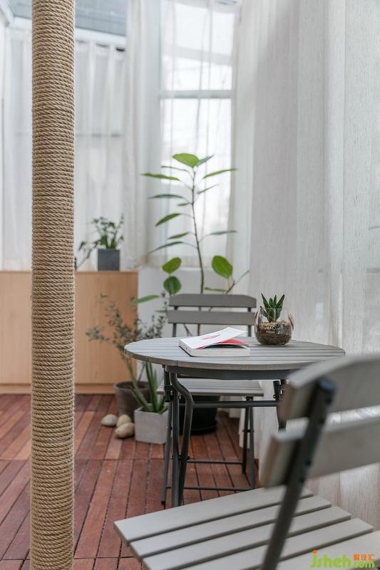 室內(nèi)設(shè)計(jì)師改造后的陽(yáng)臺(tái)陽(yáng)光透過玻璃房灑落進(jìn)來,讓室內(nèi)溫暖舒適,隔絕了外界的雜亂紛擾,防腐木,綠植,麻繩,鵝卵石這些親近自然的材質(zhì),讓心瞬間可以安靜下來,享受美好的一個(gè)下午。