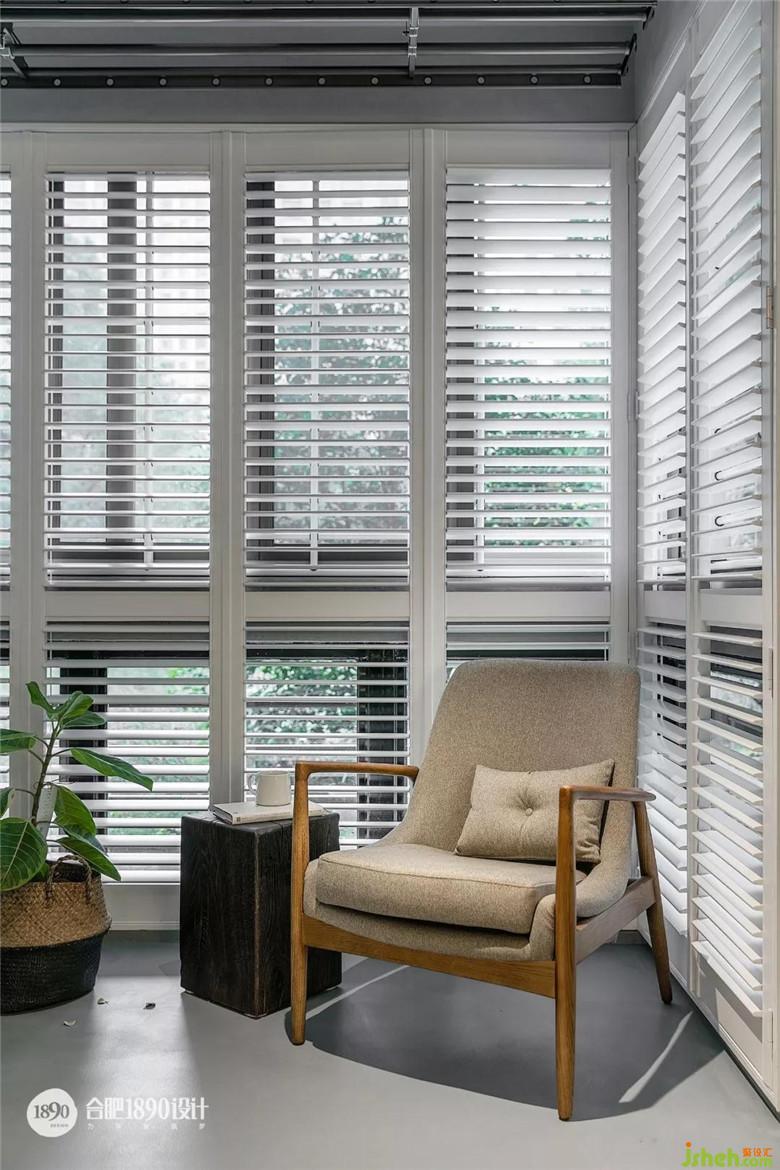 深色橡木木墩完美的搭配了單人椅,角落里的后現(xiàn)代金屬三角燈,在白紗簾的照應(yīng)下格外柔和。