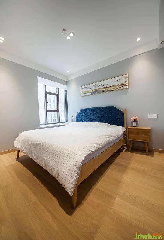 主臥空間是業(yè)主簡單、純凈生活的最直觀體現了。兩個床頭柜、一張床,一幅遠山畫,不要一絲贅物,在這沉靜的氣質里有簡單的美感而又精致舒適。