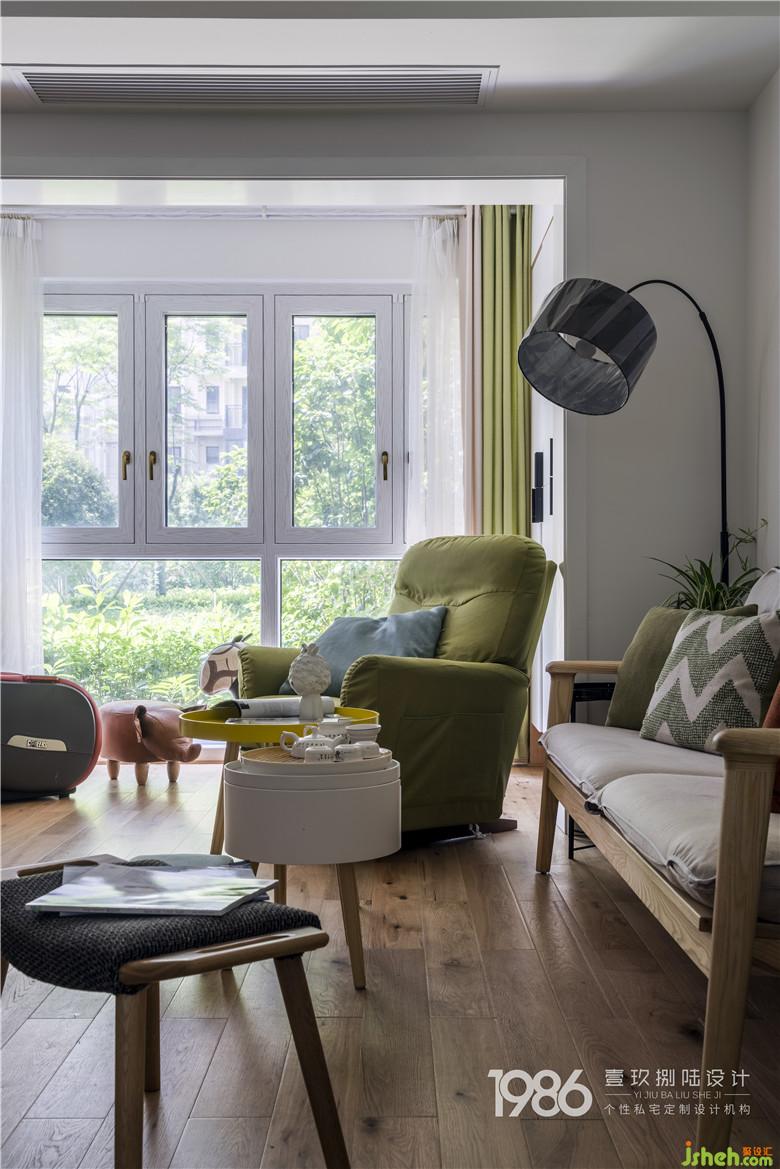 客廳的小象凳子與搖搖椅、陽臺的小馬凳子,那么閑適充滿樂趣。窗外生意盎然的花草樹木呼應(yīng)著家中的綠色,空間增添令人愉快的活力氣息,就是幸福生活最好的容器。