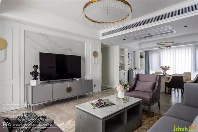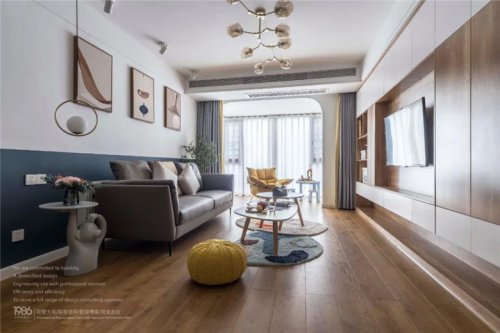 沙發(fā)背景墻是簡(jiǎn)單的線(xiàn)條墻板,超大的落地窗賦予空間充沛的陽(yáng)光,加上線(xiàn)條的立體感,整體淺色調(diào),裝修公司讓客廳格外通透明亮。