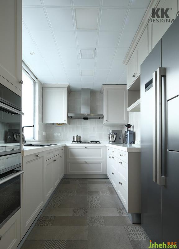 廚房整體定制柜,可以嵌入烤箱,微波爐,U字型的操作臺面,流暢的洗切炒的活動動線,美食烹飪的開始就是需要這樣一個干凈明亮的地方。