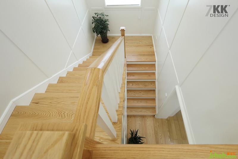 樓梯木質(zhì)紋理與白色搭配,干凈清爽。