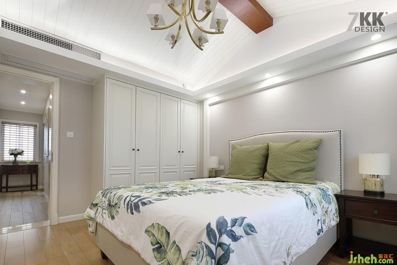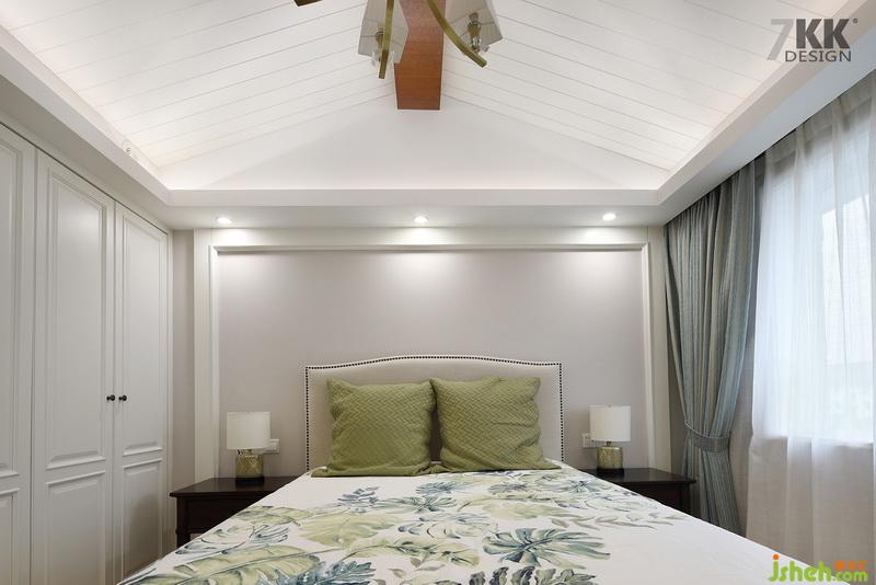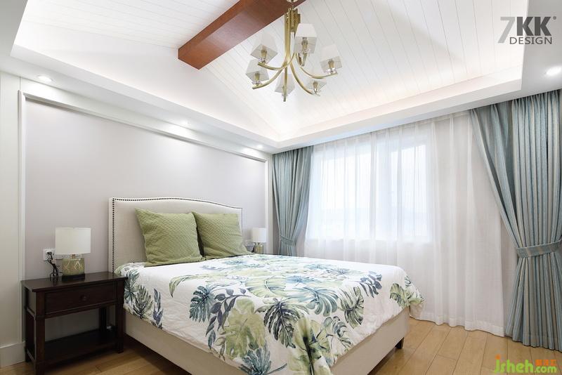 臥室床品設計公司用清新典雅的床單搭配抹茶綠的抱枕,夢幻的窗簾布藝,營造一個安心舒適的睡眠環(huán)境。
