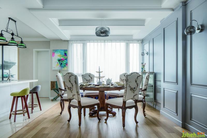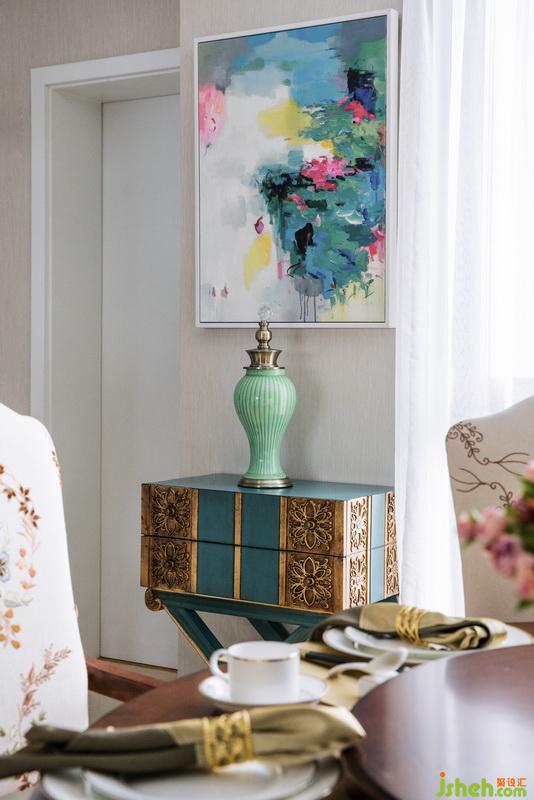 餐桌餐椅的選擇也盡顯生活品質(zhì),歲月沉淀下來的穩(wěn)重氣質(zhì),彰顯在整個家庭風(fēng)格當(dāng)中,一副抽象派油畫的點綴,不僅使餐廳多一份活力,也體現(xiàn)出藝術(shù)氣息。