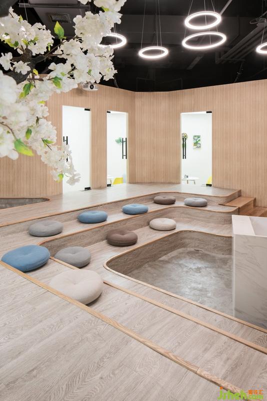 麥威英語(yǔ)是一家致力于成人英語(yǔ)口語(yǔ)培訓(xùn)的機(jī)構(gòu),專為中高端人群私人訂制語(yǔ)言課程。培訓(xùn)機(jī)構(gòu)位于上海長(zhǎng)寧區(qū)來(lái)福士廣場(chǎng),占地面積300平方左右,分接待和授課兩個(gè)區(qū)域,接待區(qū)圍繞一個(gè)公共互動(dòng)大教室不規(guī)則劃分十幾個(gè)小接待室,穿梭于走廊中,每一步都能感染到學(xué)英語(yǔ)的氛圍,授課區(qū)延續(xù)接待區(qū)整體木飾面的設(shè)計(jì),獨(dú)立區(qū)域創(chuàng)造安靜的學(xué)習(xí)環(huán)境。