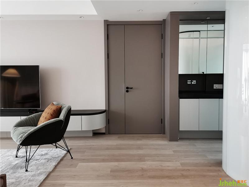 餐桌不是太大,可以改成折疊的,如果人多的話可以拉開來使用。對于這套房子業(yè)主來說,他們吃飯可能不多,大部分可能在吧臺上完成,這所以設計這個餐廳作用就是希望能夠在整個家里的環(huán)境中,無論是在客廳,餐廳都可以尋隨遇而安的一個場所,泡杯咖啡,拿個筆記本電腦,就可以辦公上網或者玩游戲,也是一個休閑的區(qū)域,對于居家生活是一種很愜意的一種空間感。 卡座下面內嵌燈帶設計,使得空間輕盈通透,增添氛圍。