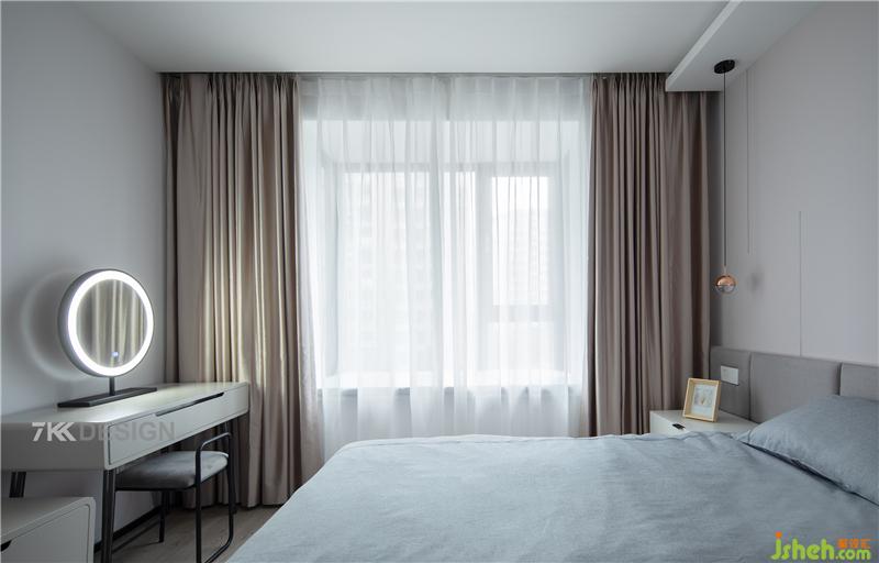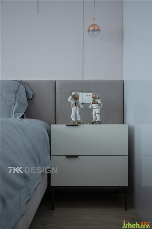 床頭選擇簡約的床頭柜增加收納,上面擺放裝飾品,讓美觀與實(shí)用并存。