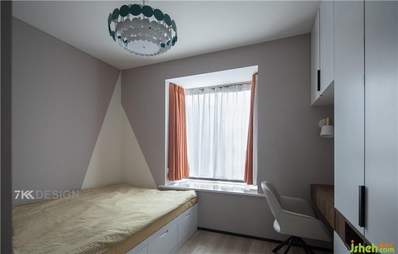 次臥暫時(shí)作為書房使用,設(shè)計(jì)多功能形式,進(jìn)門靠墻定制的柜體結(jié)合書柜一體,里面靠墻也是定制的榻榻米床下面可以收納增加儲物。這樣次臥有時(shí)也作為父母偶爾來臨臨時(shí)居住的空間。以后有小孩可以作為兒童放使用。