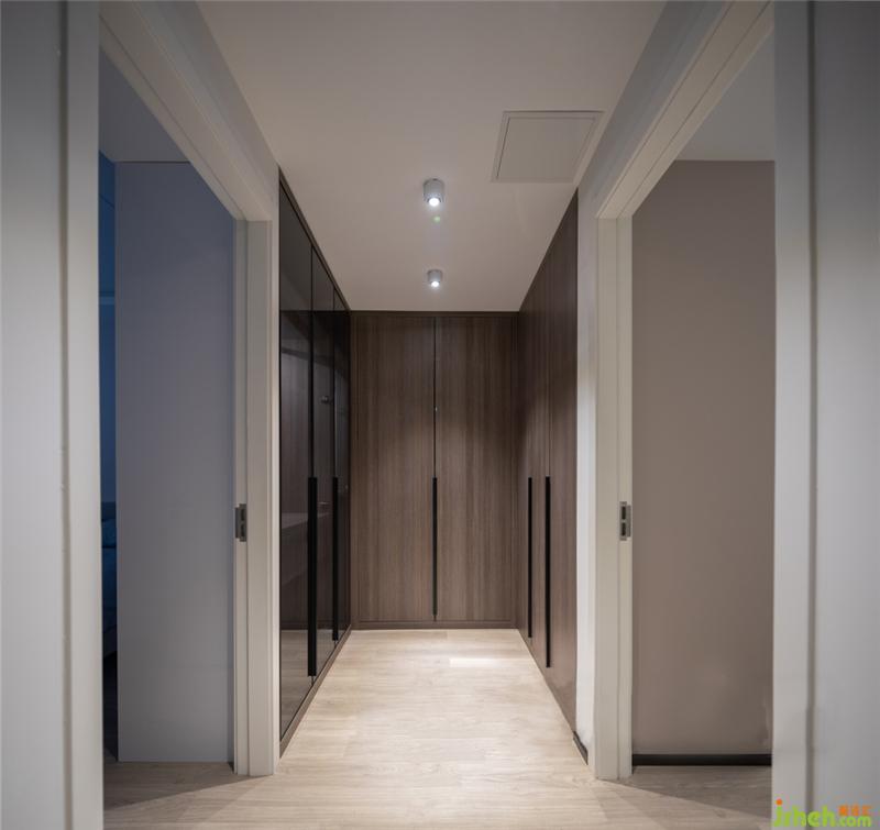 衣帽間是現(xiàn)在很多年輕人的追求,把兩臥室中間墻打掉,做出一個(gè)U型衣帽間,有一個(gè)很大的儲藏量,同時(shí)走在中間走廊也很寬敞,兩臥室門對門,都使用了雙開門,這樣南北也比較通通風(fēng)效果也很好。