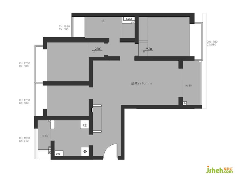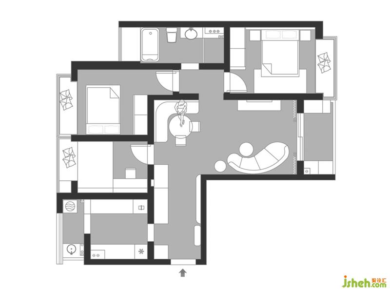 改造前原始戶型圖分析 由于是精裝房,業(yè)主預算有限,所以在格局上沒有大的改動。 房型是三房,比較緊湊,每個房間面積都比較小,收納空間不足。