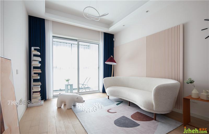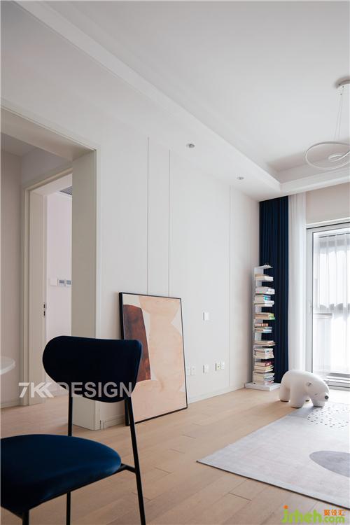 窗簾角落擺放錯(cuò)落的書(shū)架,里面擺滿了書(shū)籍,隨手一本坐在陽(yáng)臺(tái)上,喝杯咖啡,伴隨著孩子在客廳自由的玩耍,度過(guò)美好的時(shí)光上海室內(nèi)設(shè)計(jì)師。