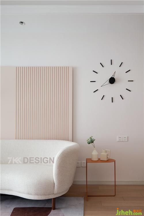 粉色與干凈明了的白色進(jìn)行調(diào)和,溫柔卻不落俗套,溫柔感如沐春風(fēng),手工搭配的簡(jiǎn)約鐘表給空間增加了視覺(jué)趣味。