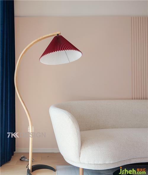 酒紅色的燈罩,原木弧形支架與沙發(fā)的弧形相呼應(yīng),讓空間更加靈動(dòng)。