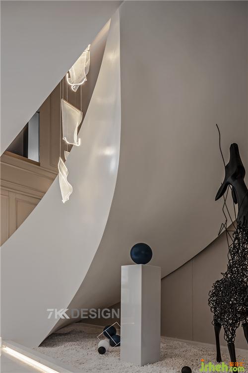 樓梯的下方?jīng)]有做過(guò)多的功能性使用,而是通過(guò)藝術(shù)暴走的方式將更多的美感呈現(xiàn)在大家面前。