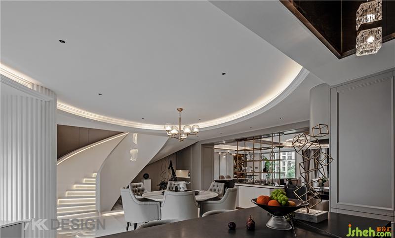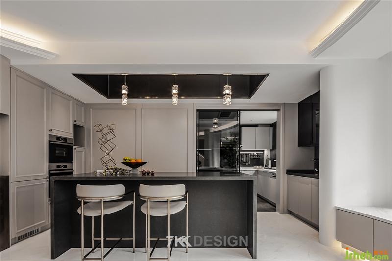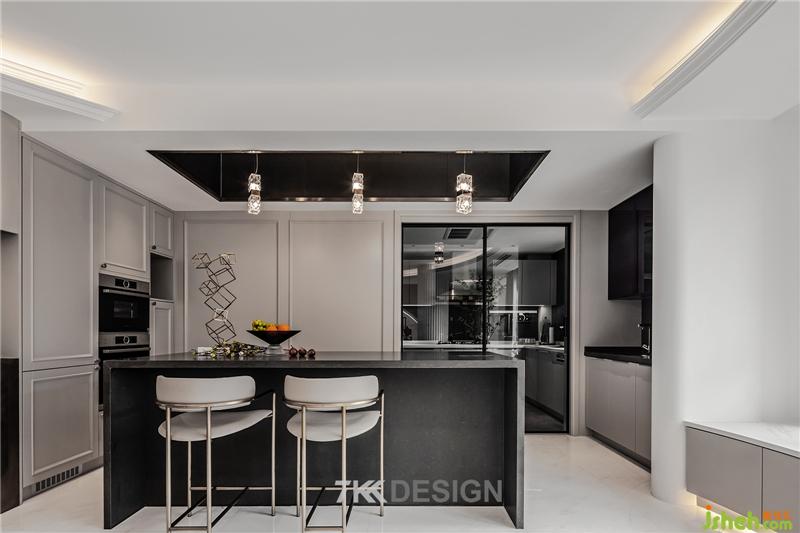 開(kāi)放式的空間打破了區(qū)域之間的界限,但同時(shí)也需要明確各區(qū)域的功能。因此中島臺(tái)成為有效的隔斷,既能達(dá)到“隔而不斷”的效果,也能增強(qiáng)空間的時(shí)尚氣質(zhì),兼具顏值和實(shí)用性。