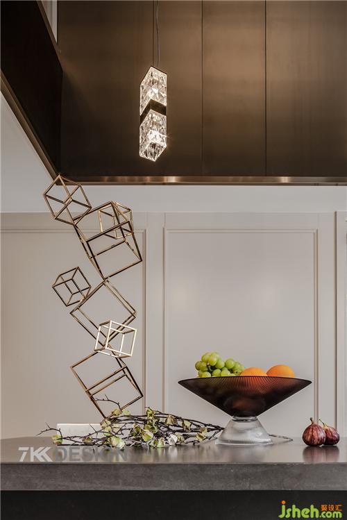 吧臺(tái)的設(shè)計(jì)提升生活的情調(diào)與質(zhì)感,吧臺(tái)上方擺放具有美感,精致,時(shí)尚魅力誘惑的藝術(shù)品,讓空間擁有不一樣的格調(diào),更增加生活儀式感。