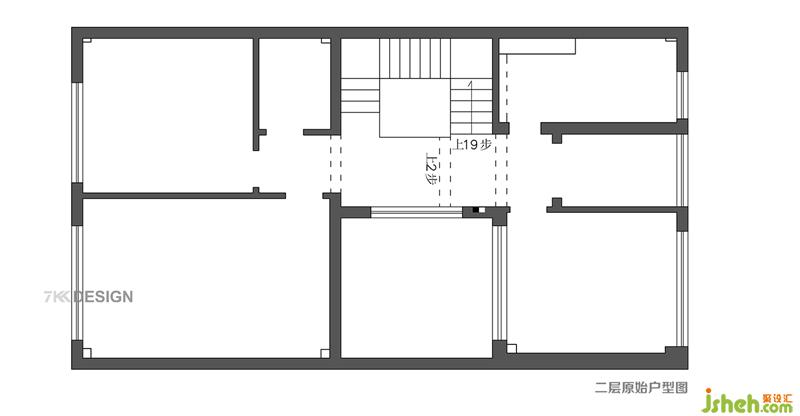 二樓原始戶型圖 二樓的錯層結構使得走廊空間很有儀式感,二樓主要作為休息區(qū)域,書房功能,衣帽間功能使用。樓梯一側的空間原本是外面的露臺空間,到三樓都是鏤空的,為了增加使用面積,重新搭建。這樣二樓和三樓都多出一塊使用面積。