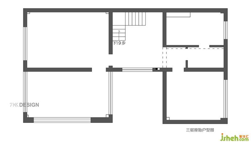 三樓原始戶型圖 從平面圖看到中間凹進(jìn)去的空間處于外立面,后期重新搭建,為三樓增加使用空間。凹進(jìn)去的左邊空間是三樓的露臺(tái)空間,物業(yè)不允許封閉。