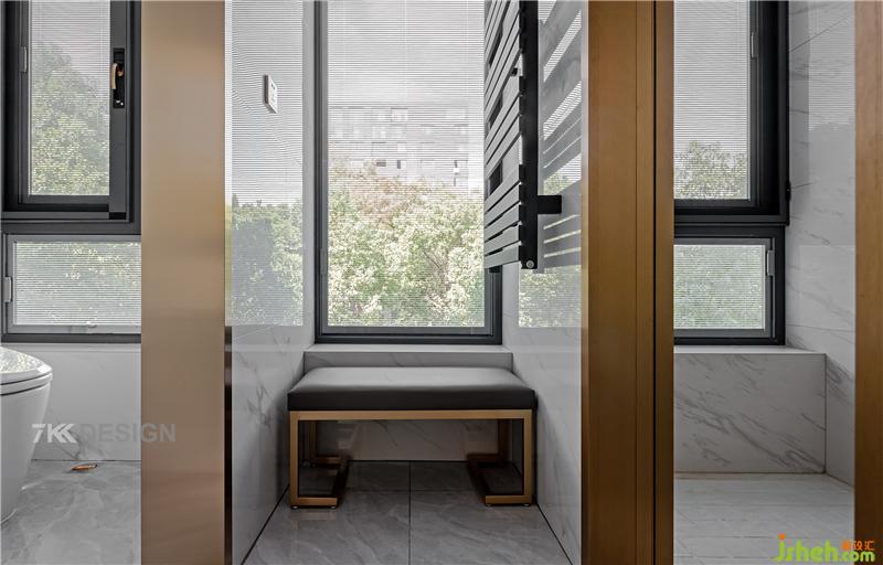淋浴區(qū)與馬桶間都靠窗設(shè)計(jì),中間擺放一張換衣登為父母和小孩洗澡提供方便。從細(xì)節(jié)可以看出這對(duì)夫妻對(duì)父母的關(guān)心之處,很有孝心。窗戶(hù)都選擇內(nèi)嵌百葉窗,透而不空的視覺(jué)感,既可以保持居家環(huán)境的隱私性,又可以保持明亮大方的采光。