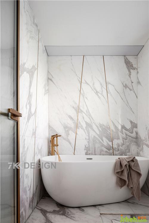 淋浴區(qū)結(jié)合浴缸,墻面與地面采用相同石材拼接,自然流暢的石材紋理與金屬線(xiàn)條鑲嵌,讓你在淋浴泡澡時(shí)享受天然紋理之美,簡(jiǎn)約而奢華。