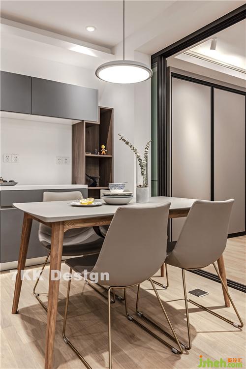 餐廳的設(shè)計(jì)首先是在寬敞和采光方面的選擇也是考慮的一點(diǎn),餐桌的上方圓形吊燈簡(jiǎn)約而又不奢華,實(shí)用、設(shè)計(jì)師選購(gòu)用的北歐風(fēng)情的實(shí)木餐桌,考慮到它的實(shí)用性,摸上去的質(zhì)感還是造型獨(dú)一無二,一方面是要與屋內(nèi)的設(shè)計(jì)風(fēng)格一致,另一方也要考慮到業(yè)主的喜好。根據(jù)需求,我們?cè)诓蛷d的旁邊給他專門做了定制了木飾面酒柜。酒柜分為四層,中間2層放置了手辦模型,第一層和第二層里面收藏著從澳洲和日本帶回來的酒水。