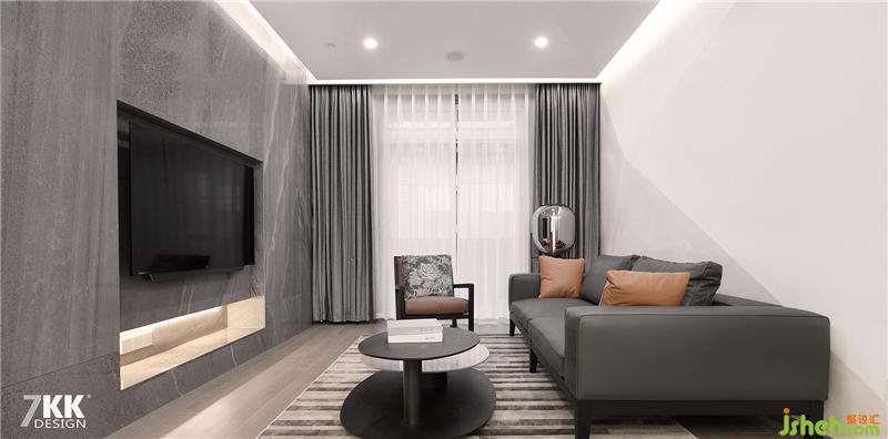 電視背景墻采用深色石材墻面,內(nèi)嵌燈帶,沙發(fā)背景墻采用特色造型刷白色藝術(shù)漆,石膏板吊頂內(nèi)嵌燈帶設(shè)計,即使是不同材質(zhì)不同造型在同一空間上卻處理的錯落有致,精致而又大氣。