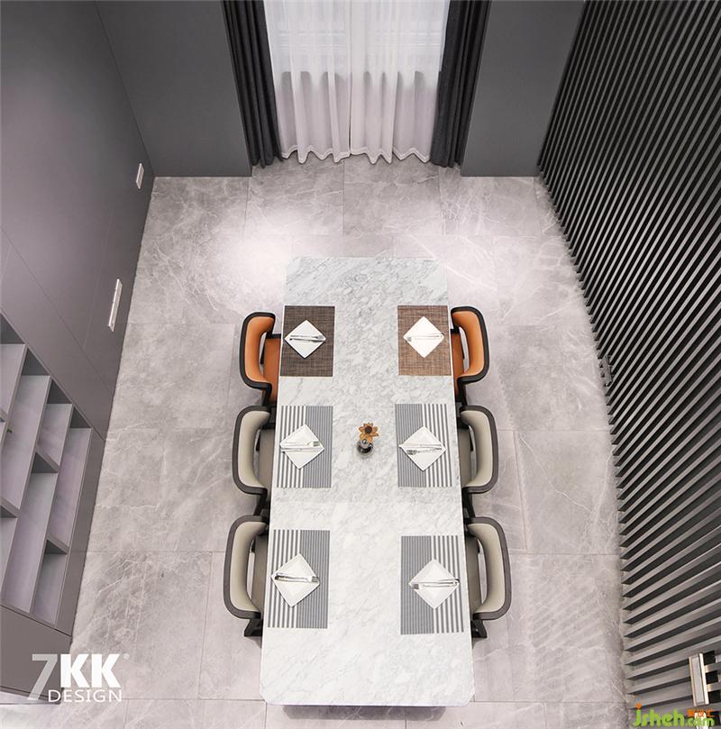 原先的二樓部分敲掉,做成挑空,從樓上俯視往下,整潔又美觀。大氣,震撼。