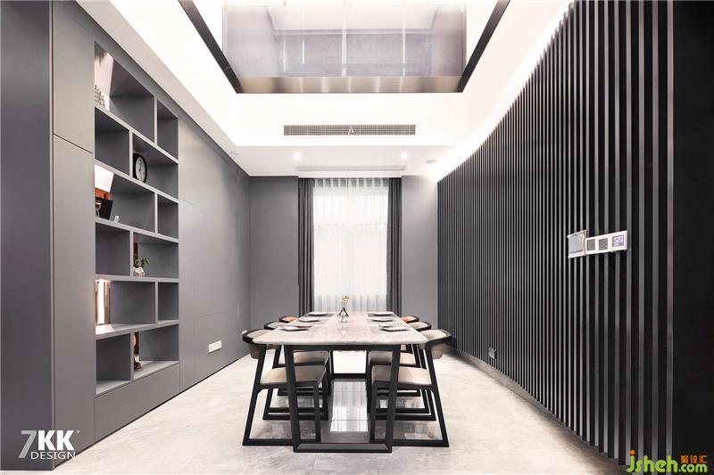 中西餐廳廚中間裝飾的鏤空隔斷,擺滿藝術(shù)的裝飾品提升整個空間藝術(shù)氛圍,同時又有通透性。