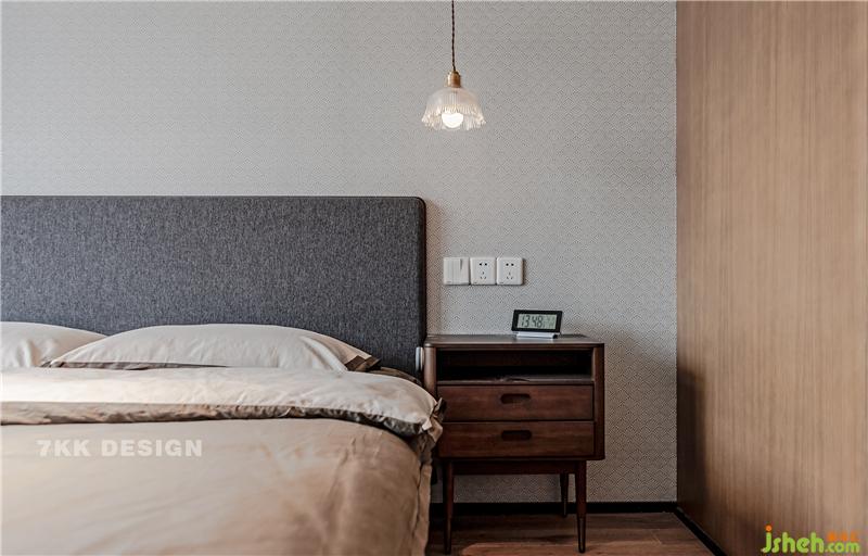 主臥是業(yè)主夫妻居住。他們衣物比較多,比較注重收納功能。電視背景墻和衣柜結(jié)合整體定制,蘇州裝修設(shè)計(jì)讓收納更整潔?;疑?木色為基調(diào),臟粉色床品讓室內(nèi)變得溫柔浪漫,經(jīng)典灰白地毯搭配,豪華又舒適。