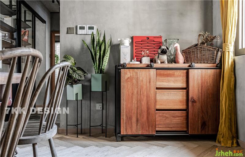 靠窗角落,精選的小型收納柜,上面采用也是滑軌移門,平時(shí)放置遛狗一些雜物。旁邊綠植的點(diǎn)綴給空間增加一份活力。黃色的窗簾搭配讓整體空間多了明亮溫暖的氛圍。