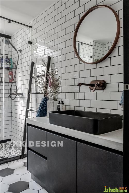 客衛(wèi)的顏值一點(diǎn)也不輸主衛(wèi),高級(jí)灰與白色搭配,鐵藝架,干花,藝術(shù)圓鏡,臺(tái)上盆,每一處搭配都散發(fā)精致的藝術(shù)氣息。