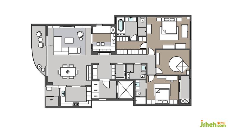 因為房子本身就是精裝房,整體裝修品質(zhì)還可以,硬裝上業(yè)主也不希望有改動。所以設計師最終在原始戶型的基礎上,上海裝修設計以軟裝搭配為主,硬裝上對于部分墻面材質(zhì)重新做了處理,上海裝修設計原始戶型收納比較少,設計師增加了更多的收納功能,讓實用與美觀并存,重新賦予精裝房更具有靈魂品質(zhì)的現(xiàn)代輕奢時尚都市情懷。