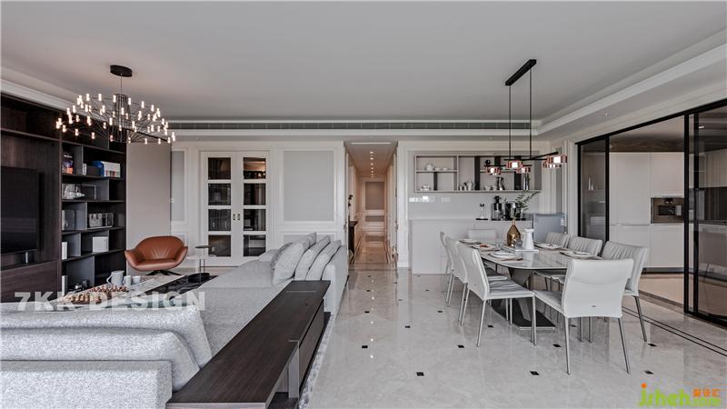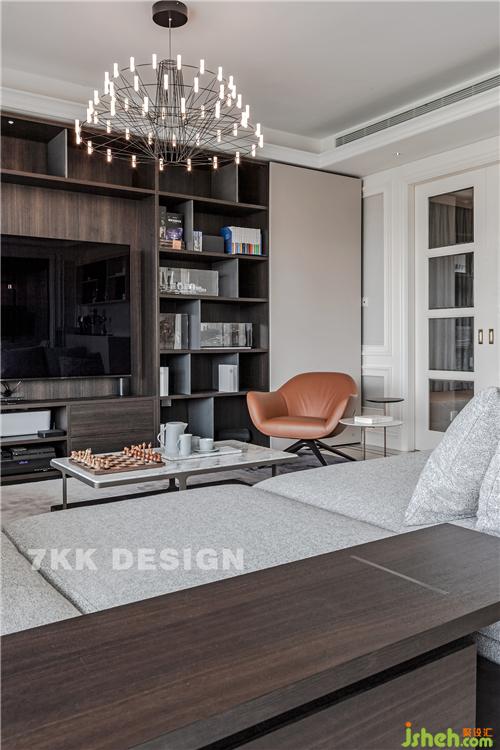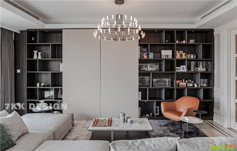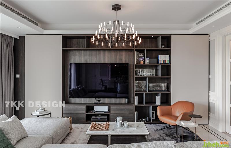 客廳,設計師在對電視柜的設計上,柜門采用自用活動的移門形式,業(yè)主可以很隨性的隨時隱藏或展示自己想要的功能需求。