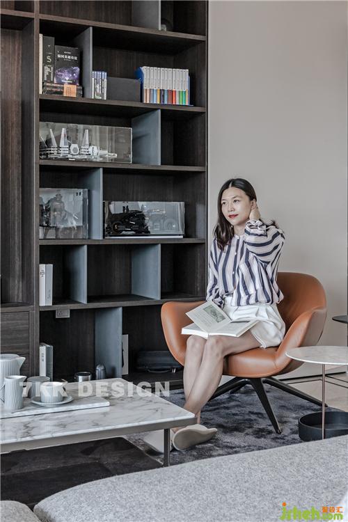 橙色皮質(zhì)的單人沙發(fā)映入眼簾,跳躍式的色彩搭配,讓穩(wěn)重的空間多了一絲熱情。一旁擺放精致的茶幾,品一杯好茶,讓心靜下來,讀一本好書。黑灰深淺不規(guī)則漸變的地毯給客廳空間增加更多的儀式感,更精致的品質(zhì)生活。