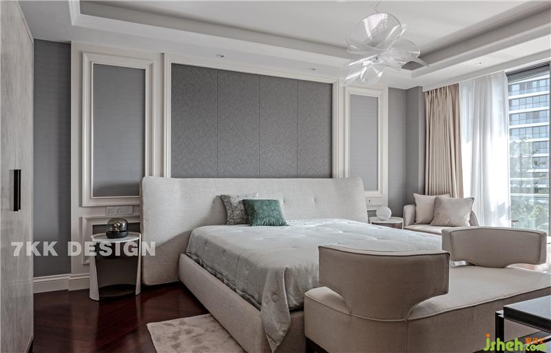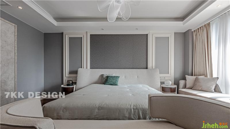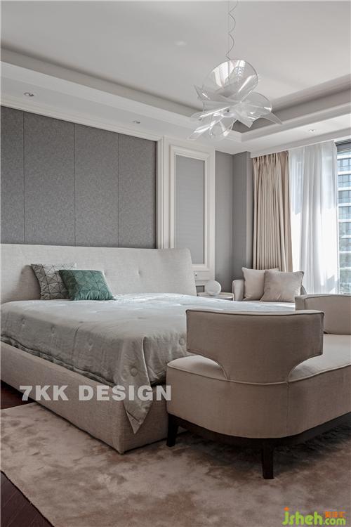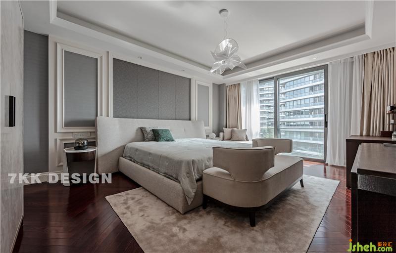 主臥面積45平方豪華套間形式,超大衛(wèi)生間+衣帽間。這一款落地式大床頭,很適合大面積的臥室,質(zhì)感豐滿,整體空間品味爆棚,床尾搭配環(huán)繞式沙發(fā)凳既美觀又大方,給臥室增添了更溫馨的氣息,可以放脫下來的衣服非常方便實(shí)用。