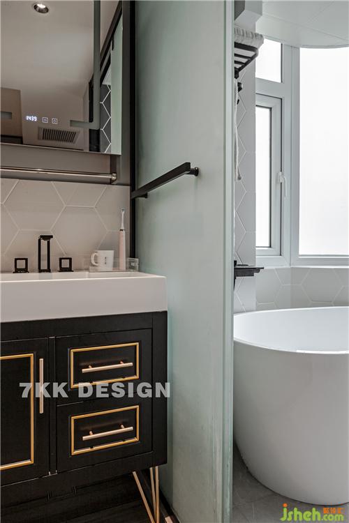 淋浴空間靠窗放置獨立個性浴缸,當累了、感到有壓力和小頹廢的時候,就把自己丟到溫暖的浴缸里,靜靜的休息一會兒。