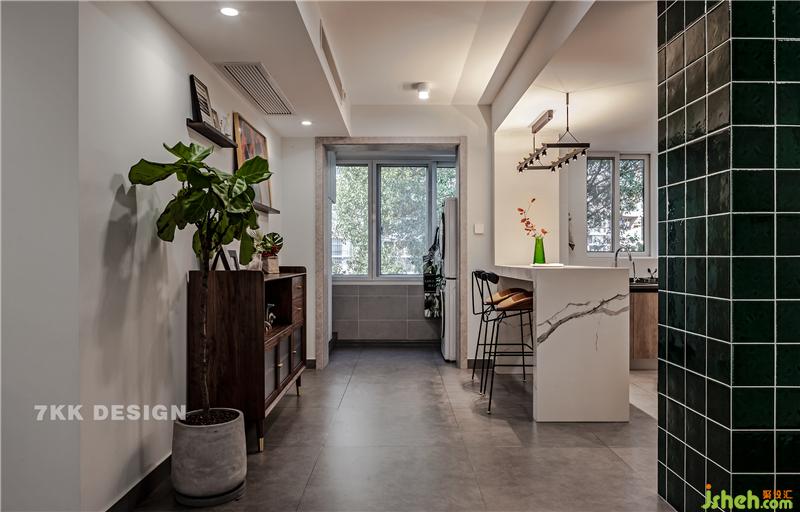 從玄關(guān)進(jìn)來看餐廳視覺,簡約時(shí)尚,復(fù)古又清新。