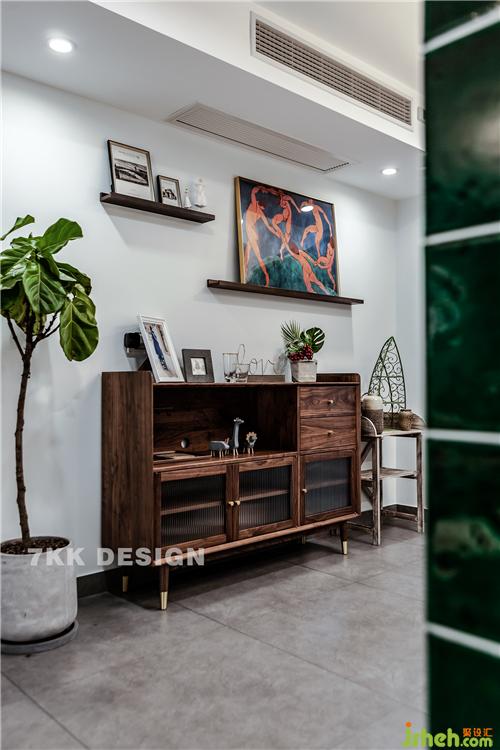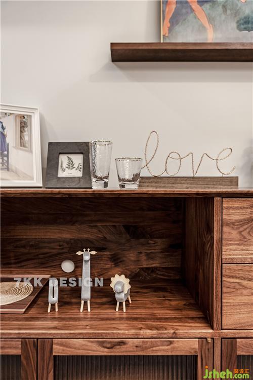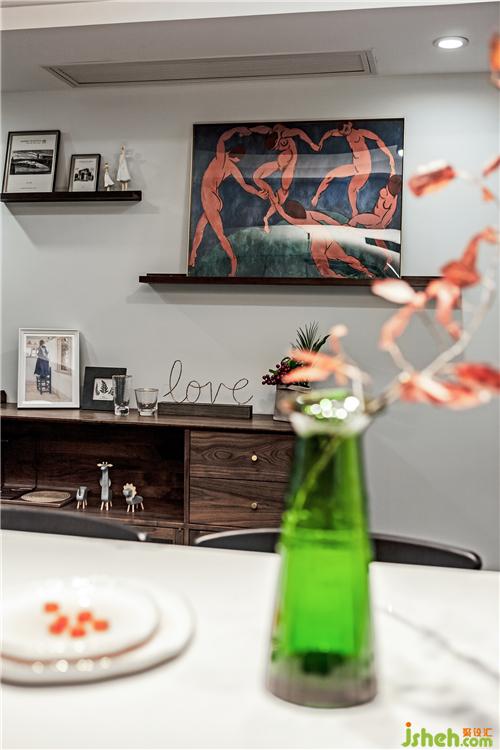 成品的餐邊柜里面暫時(shí)擺放的業(yè)主收藏的小飾品。上方的裝飾畫和玻璃杯也是設(shè)計(jì)師自己帶來給業(yè)主搭配的哦。