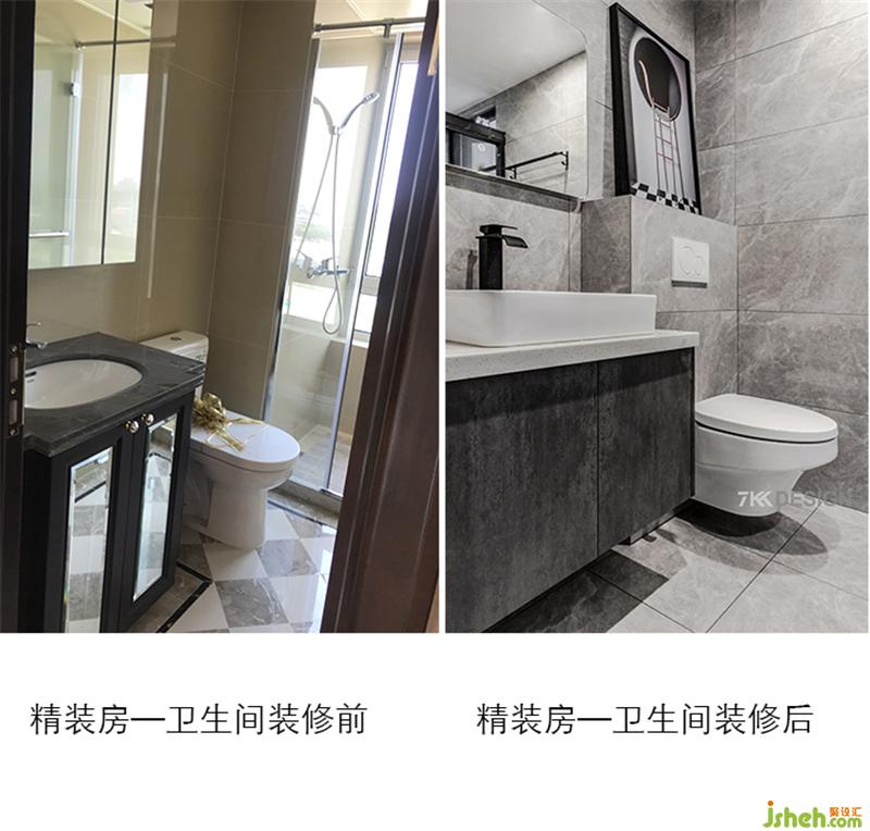3、原房屋衛(wèi)生間外側(cè)有部分面積可以納入室內(nèi)使用,多出來的空間我們做成了客衛(wèi)和工作區(qū)域。設計后的客衛(wèi)位置本身就是原先客衛(wèi)的位置旁邊,只是向后移動了一下。馬桶做的是掛壁式馬桶,所以不涉及改馬桶坑位的問題,本身整個房間的水管就在客衛(wèi)的位置,所以也不涉及水管改動,下水的問題。
