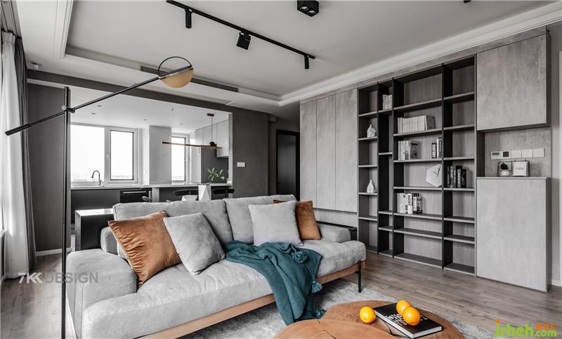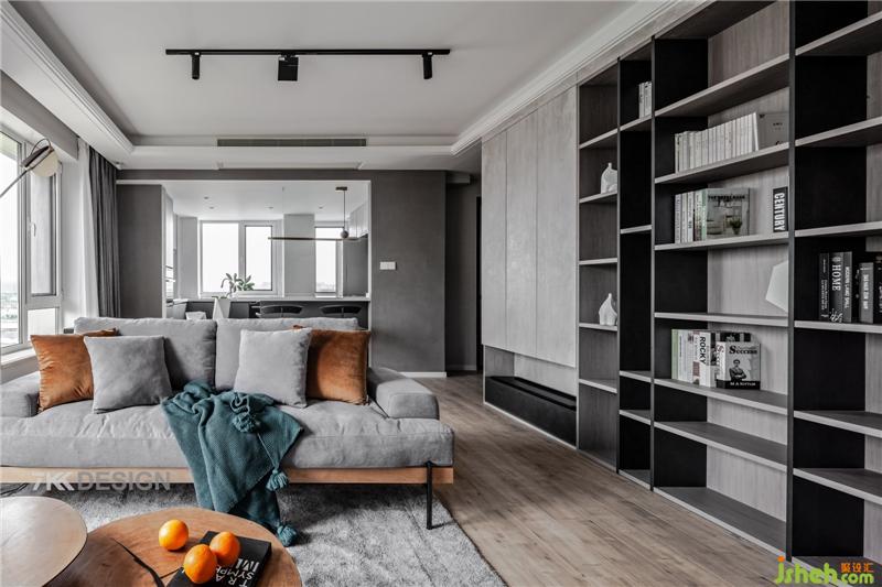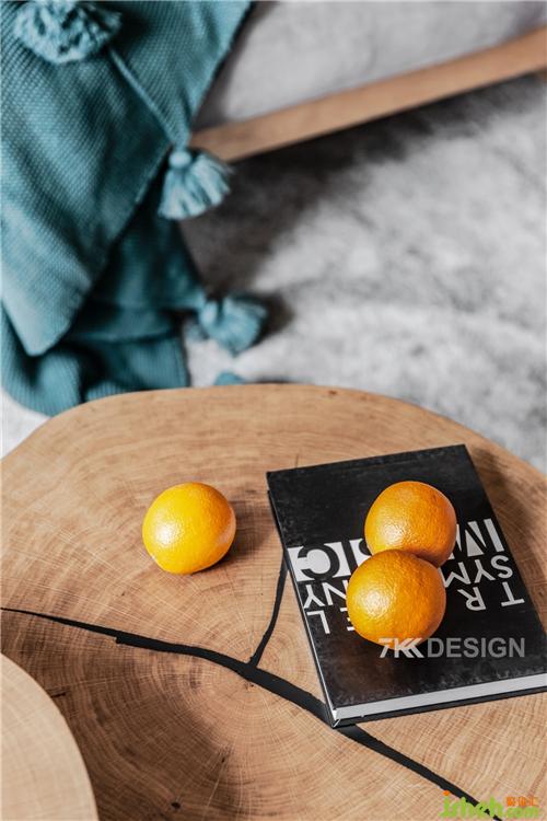 北歐風(fēng)情的棉質(zhì)沙發(fā),是業(yè)主精心挑選出來(lái)的,沙發(fā)灰度也是剛剛好,不深不淺的水泥色,搭配著客廳整體的灰色主色調(diào),再配上橙色的抱枕,藍(lán)色的毛毯,木系的茶幾,冷暖結(jié)合,很是舒適。