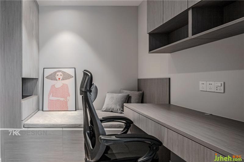 書房+榻榻米多功能空間設(shè)計,滿足業(yè)主在家辦公的需求,同時增加更多的收納功能,也為家里的保姆留了可隨時休息的空間。