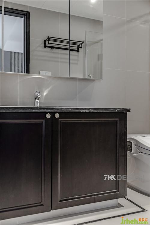 衛(wèi)生間設(shè)計成干濕分離,淋浴房用玻璃隔斷,保持沐浴之外的地方干燥,衛(wèi)生易打掃,同時也提高了安全性,維持了整體空間的整潔美觀。 馬桶選的是掛壁式馬桶,輕巧,方便打掃,馬桶背景墻體有做部分凸出設(shè)計,是因?yàn)楦脑斓男l(wèi)生間,是為了把水箱包進(jìn)去設(shè)計。馬桶上方放置一副裝飾畫比較有藝術(shù)感,也使得整個空間變得更為簡約立體。