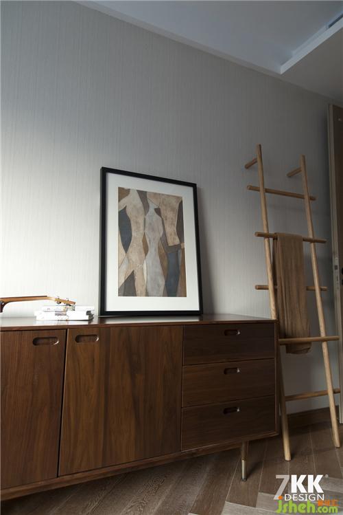 臥室。一排古典深色八斗柜,一幅抽象映象畫,生活實(shí)用與美學(xué)的搭配,都在裝飾的藝術(shù)中體現(xiàn)。