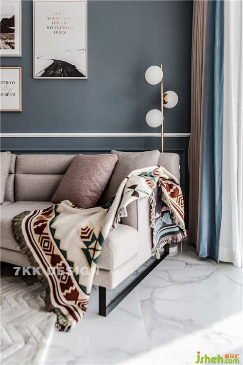 沙發(fā)一角簡易金屬落地燈搭配,彌補光源的不足,增加層次感和生活儀式感。