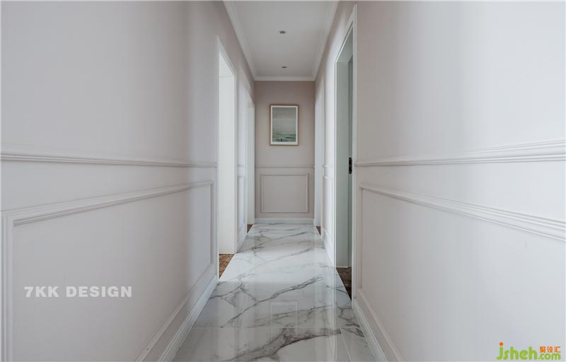 走廊盡頭一副簡單的裝飾畫點綴。墻面都是采用石膏板線條裝飾,很有空間感立體感。