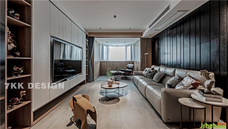 客餐廳一體,南北通透,沙發(fā)2.8m可3人座,:黑白永遠(yuǎn)是經(jīng)典永不會過時(shí)的色彩,背景墻成品定制黑色細(xì)木條造型木飾面,與電視背景墻白色木飾面柜體色調(diào)形成明顯的色調(diào)對比,簡單而不失藝術(shù)魅力。