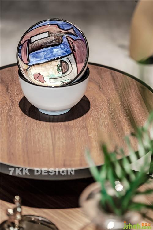 客廳和陽臺中間利用窗簾作為功能劃分,拉上窗簾,陽臺放上一張單人沙發(fā)椅,變可作為獨(dú)立的閱讀休閑空間,上海裝修設(shè)計(jì)平時(shí)作為客廳一部分,擴(kuò)大客廳空間面積。陽臺兩側(cè)靠墻定制到頂?shù)墓褡?,靠窗定制矮柜,既增加臺面裝飾又增加收納功能。 窗簾盒和門套都是采用木飾面,客廳和陽臺無主燈設(shè)計(jì)讓頂面更加簡潔干凈,視覺上顯得層高更高,光線更加均勻,可以更加有層次的利用光線,配合落地?zé)?,筒燈營造不一樣的客廳休閑照明氛圍。 圓形藝術(shù)茶幾錯(cuò)落搭配,精致實(shí)用。